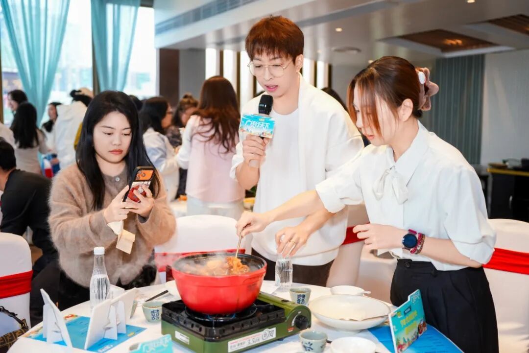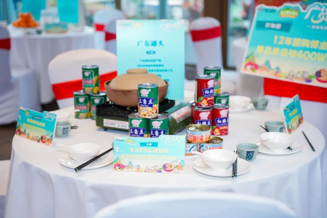 活动现场,陶陶居盆菜、汕头牛肉丸、揭阳苦笋罐头、揭西矿泉水等原材料皆为岭南土特产,像陶陶居现场展示的经典盆菜,不仅带着非遗粤菜记忆的底色,还适配了团长社群中“家庭聚餐”的消费需求。供应商以展示、试吃、资质说明呈现 “新广货” 优势,团长结合粉丝与市场需求,了解核心供货信息,现场达成多项初步对接。